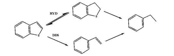 原料中的含硫化合物在重整反应条件下生成H2S, 若不从系统中除去, H2S在循环氢中积聚, 导致催化剂的脱氢活性下降。研究表明, 当原料中硫含量为0.01%和0.03%时, 铂催化剂的脱氢活性分别降低50%和80%。原料中允许的硫含量与系统的氢分压有关, 当氢分压较高时, 允许的硫含量可以较高。一般情况下, 硫对铂催化剂毒化是暂时性的, 一旦进料中不再含硫, 一段时间后催化剂的活性就可以恢复。但是如果长时间存在过量的硫, 也会造成永久性中毒。多数双金属催化剂比铂催化剂对硫更加敏感, 因此其对硫的限制也更加严格。硫可以与铼发生反应, 并难以用氢气还原。另一方面, 原料中的硫含量也不是越低越好, 有限的硫含量可以抑制氢解反应和深度脱氢反应, 这对铂铼催化剂非常重要。在使用新鲜的或刚再生过的铂铼催化剂之前, 常常要有控制地对催化剂进行硫化。原料中的含氮化合物在重整反应条件下转化为氨, 吸附在酸性中心上抑制催化剂的加氢裂化、异构化和环化脱氢性能。一般认为, 氮对催化剂的毒化作用是暂时的。CO能与铂形成配合物, 造成铂催化剂中毒。