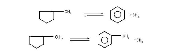 (3) 环烷烃:环烷烃可断裂生成烯烃, 也可脱氢成为芳烃:
