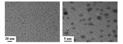 由图2可以看出, 纳米Pd颗粒粒径均匀, 平均为(2~3) nm, 且纳米Pd分散性较好, 没有出现团聚现象。