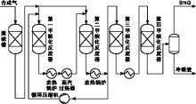 总技术路线为:采用碎煤加压气化技术产出有效合成气, 合成气经变换、净化后进入甲烷化合成装置, 合成出甲烷含量高达95%以上的天然气。其核心工艺为英国戴维合成气完全甲烷化技术(见图1), 配套进口合成气甲烷化催化剂。