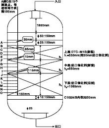2018年8月27日, DTC-M1S合成气甲烷化催化剂在内蒙古大唐国际克什克腾煤制天然气有限责任公司甲烷化工业装置第一甲烷化反应器(C102A/B)上首次装填, 装填量11.5 t, 装填高度530 mm, 对应位置为热电偶A~E点, 装填情况如图3所示。